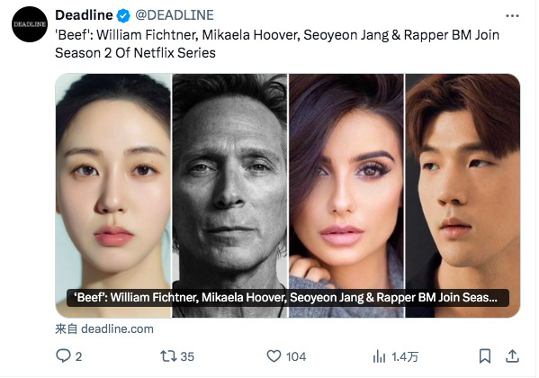 1905电影网讯 据Deadline独家报道,张素元、威廉·菲克纳、米凯拉·霍沃、“BM”金珍锡将加入Netflix大热剧集《怒呛人生2》(Beef 2),与奥斯卡·伊萨克、凯瑞·穆里根、查尔斯·梅尔顿、卡莉·史派妮、尹汝贞、宋康昊共同出演。